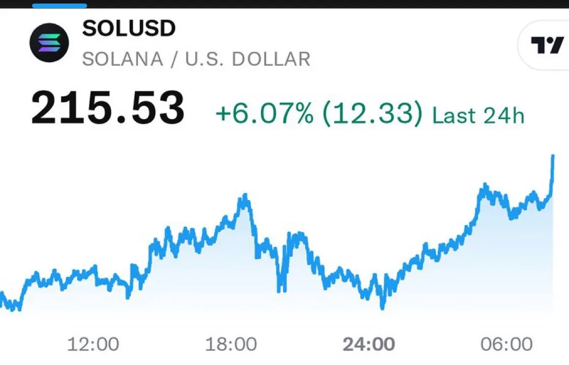 SolanaFloor监测显示,8月28日,SOL价格突破215美元,创2月4日以来206天新高,24小时涨幅达6.07%。