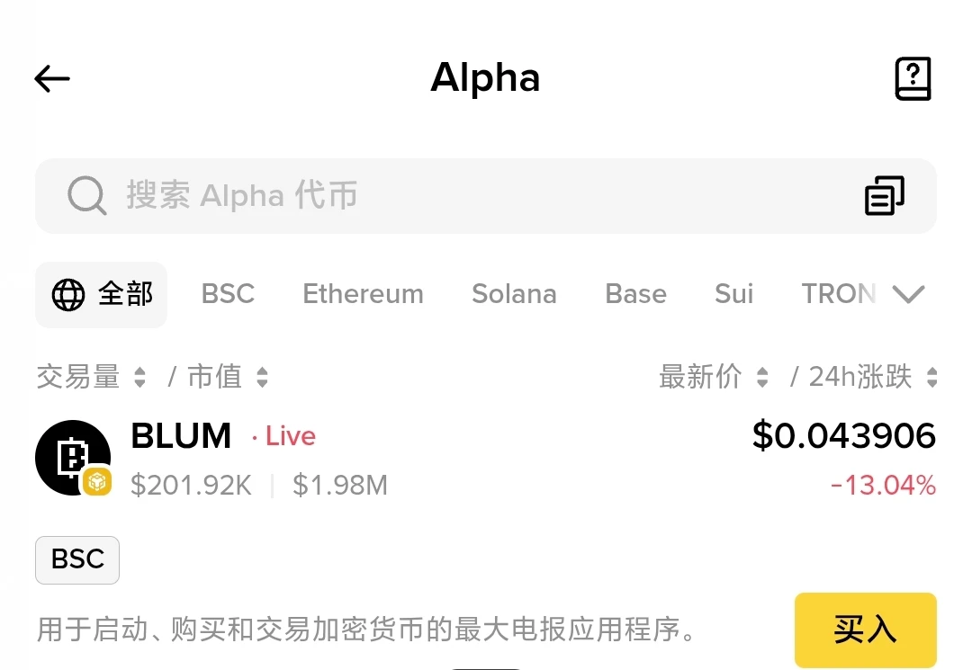 Binance Alpha上线BLUM代币并启动230积分空投活动