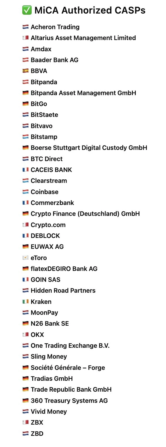 7月8日,Circle欧盟政策总监Patrick Hansen透露,欧盟《加密资产市场监管法案》(MiCA)生效半年来,已有14家机构获得稳定币发行许可,另有39家取得加密资产服务提供商(CASP)资质。