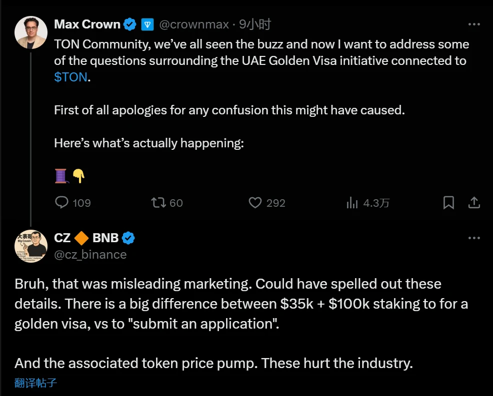 7月8日,TON基金会CEO Max Crown就阿联酋“黄金签证”项目争议作出澄清:该项目并非由阿联酋政府直接发起,而是通过授权合作伙伴推进,且未获得官方认可。