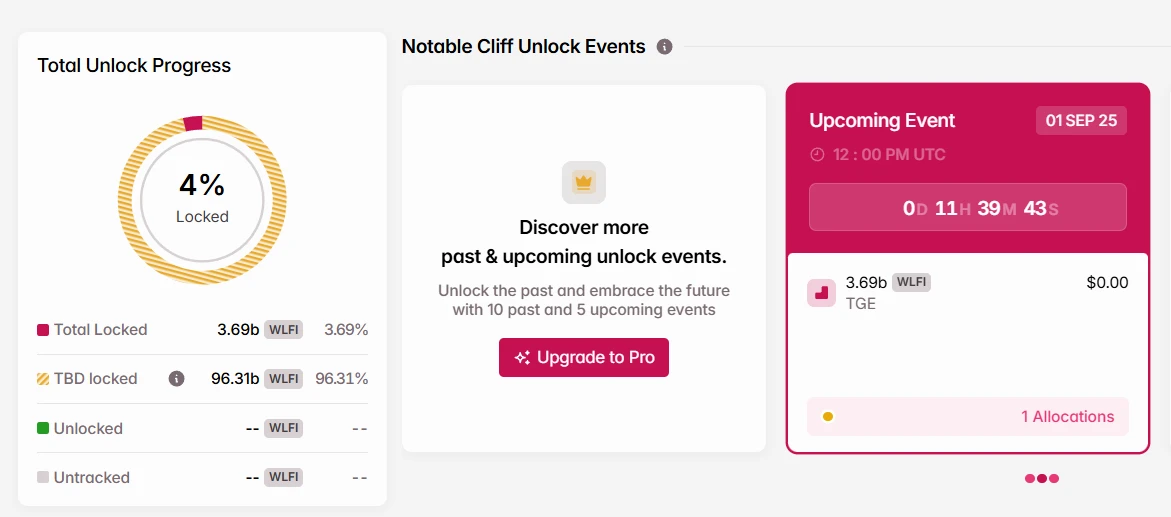 Token Unlocks数据显示,9月1日起当周将发生多起重大代币解锁事件,涉及总价值逾12亿美元。具体包括:WLFI于9月1日解锁36.9亿枚代币(11.8亿美元,占总量3.69%);ENA于9月2日解锁4063万枚(2621万美元,占流通量0.64%);IMX于9月5日解锁2452万枚(1248万美元,占流通量1.27%);IOTA于9月3日解锁1516万枚(287万美元,占流通量0.42%);RED于9月6日解锁554万枚(251万美元,占流通量2.52%);HONEY于9月3日解锁1.2165亿枚(218万美元,占流通量1.78%);SPEC于9月4日解锁362万枚(157万美元,占流通量14.50%);STIK于9月6日解锁150万枚(120万美元,占流通量2.54%);HFT于9月7日解锁1362万枚(108万美元,占流通量1.94%);BMEX于9月4日解锁313万枚(101万美元,占流通量0.81%);WMTX于9月5日解锁500万枚(81.86万美元,占流通量0.49%)。