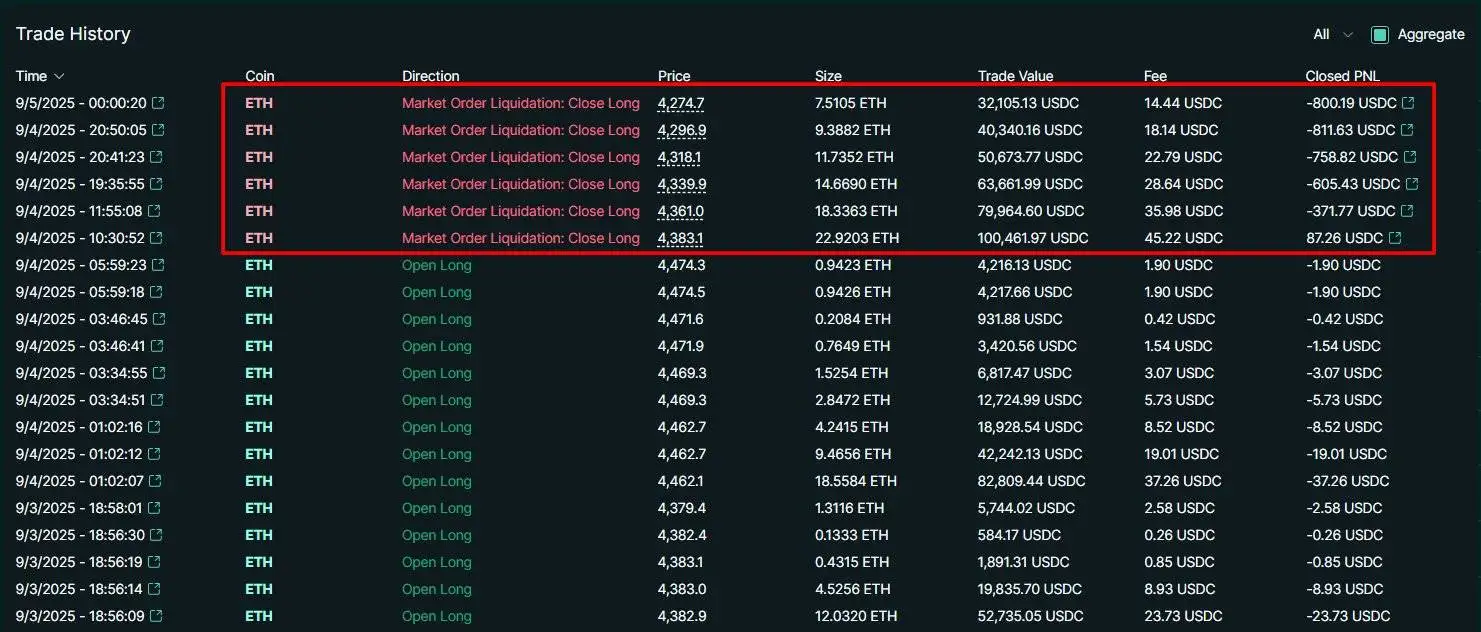 链上分析师Onchain Lens(@OnchainLens)监测显示,交易者James Wynn(@JamesWynnReal)持有的以太(ETH)25倍杠杆多头仓位于9月5日连续6次遭遇清算。