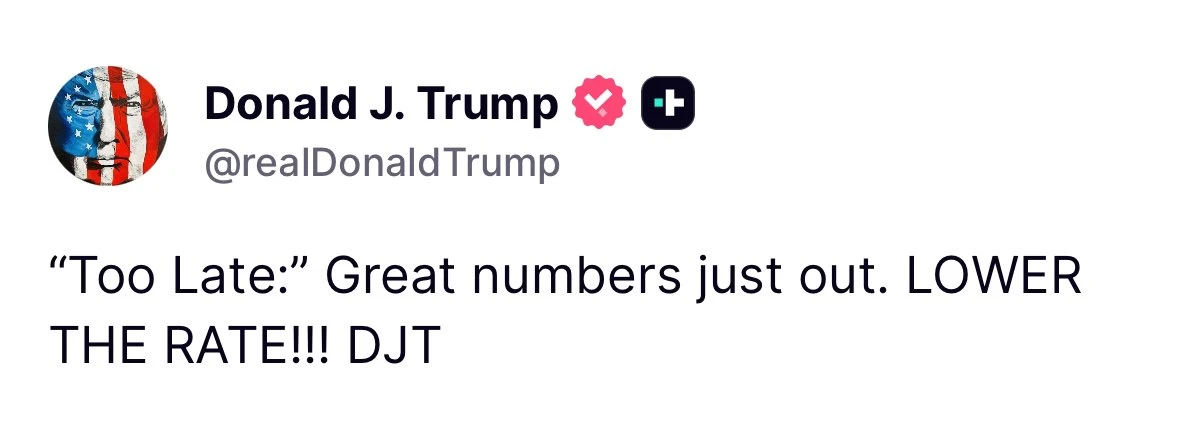 7月17日,特朗普通过社交媒体平台再次公开建议美国联邦储备系统降低基准利率。相关动态配发了主题图表,未披露具体政策依据。该表态延续了其任期内对货币政策的常规关注模式。