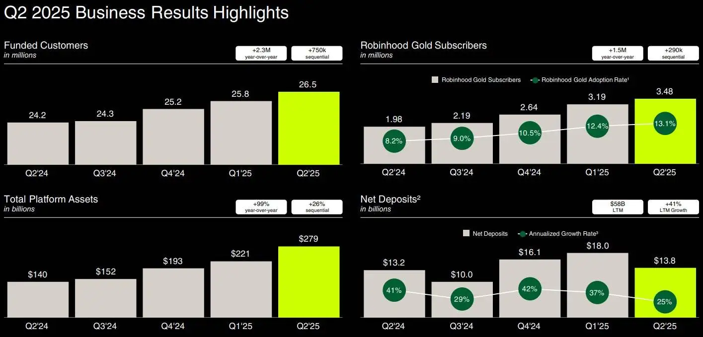 Robinhood 2025年Q2财报发布,多项业务指标创新高