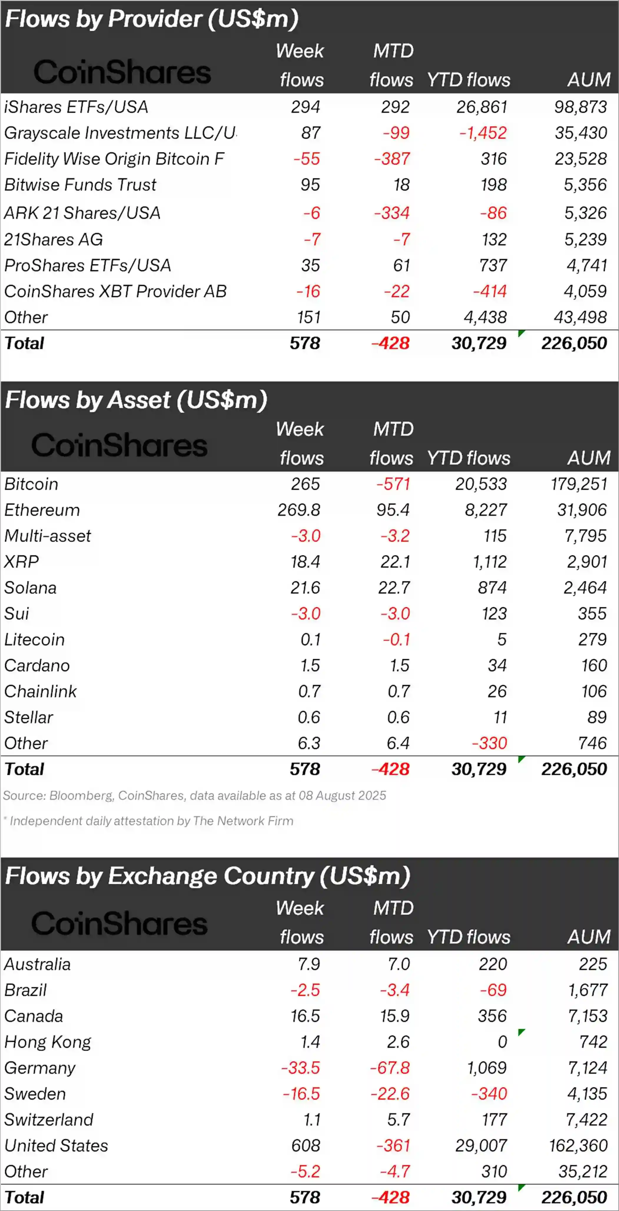 CoinShares周报:数字资产投资产品单周净流入33亿美元,比特币创7月新高