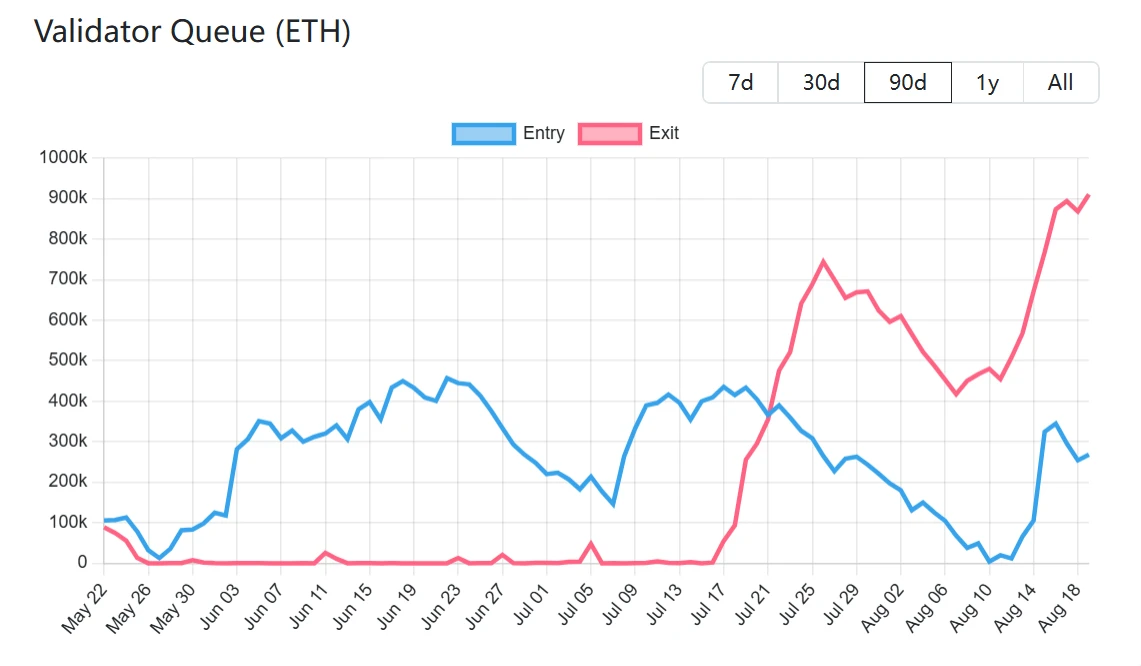 以太坊PoS网络质押准入队列首次超过退出队列,9月2日新验证者需求达峰值