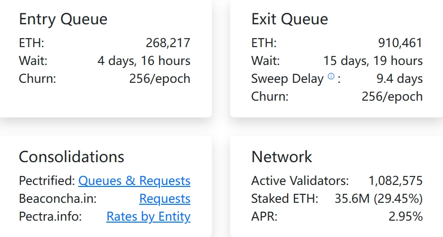 以太坊PoS网络质押流动监测:退出与准入队列数据更新