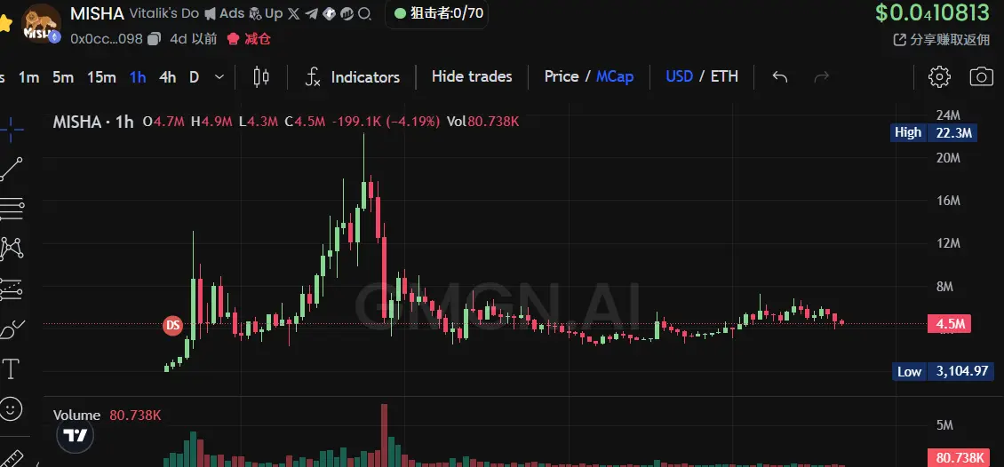 市场进化过程中暴露出叙事的致命缺陷。以MISHA为例,该代币凭借”V神宠物”概念24小时内飙升至2000万美元市值,却因创始人一句否认瞬间崩盘。